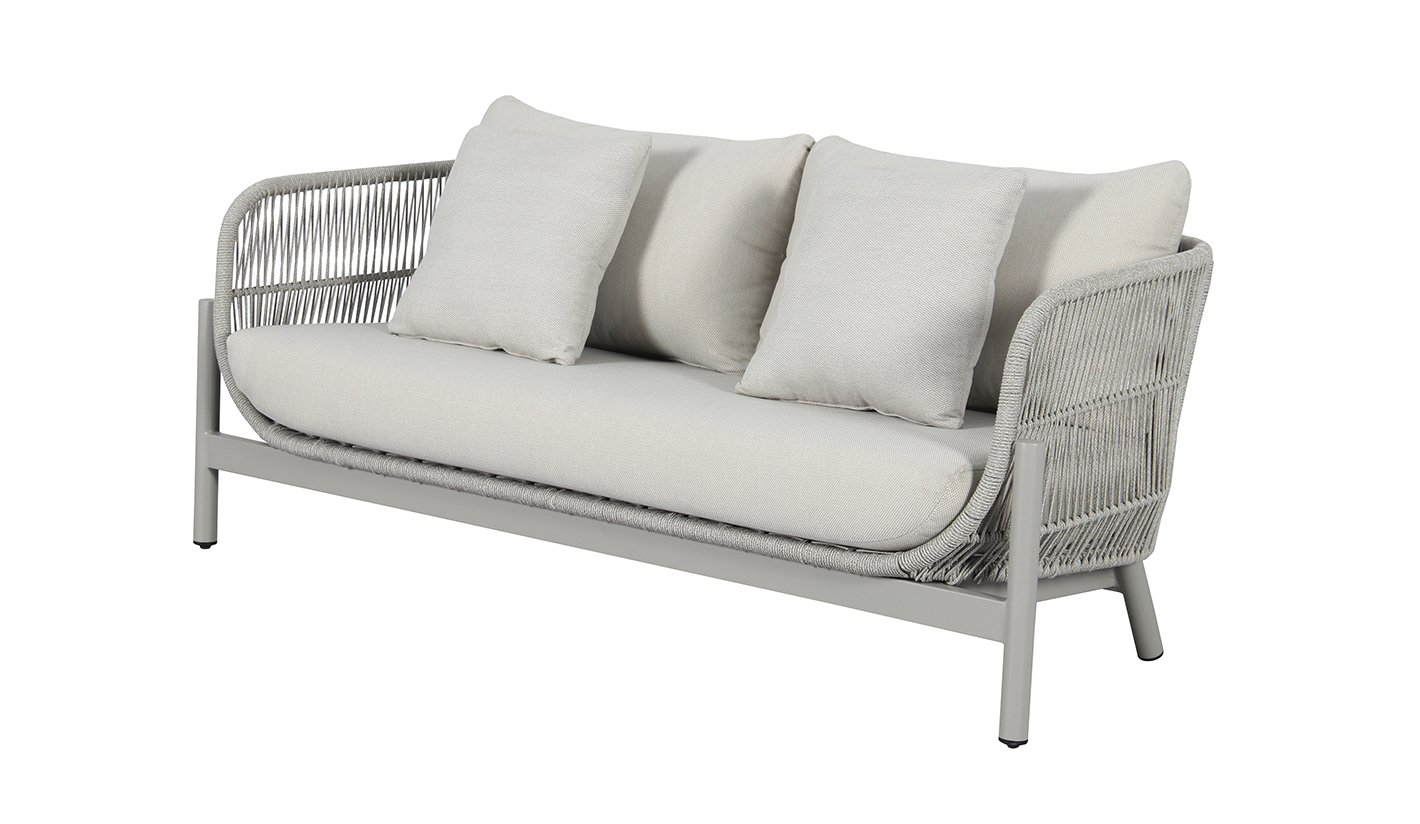 Sofá para uso en exterior para dos personas con estructura de aluminio gris y asiento y respaldo de cuerda de poliéster de 5mm.