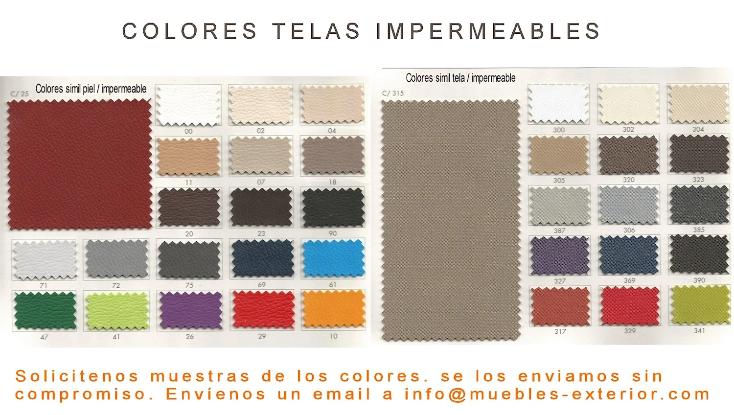 Tejido de las colchonetas mixto ( por la parte superior náutica y por la parte inferior textilene para una mayor transpiración) y una densidad de 25kg/m3, totalmente apto para uso al exterior y en hostelería