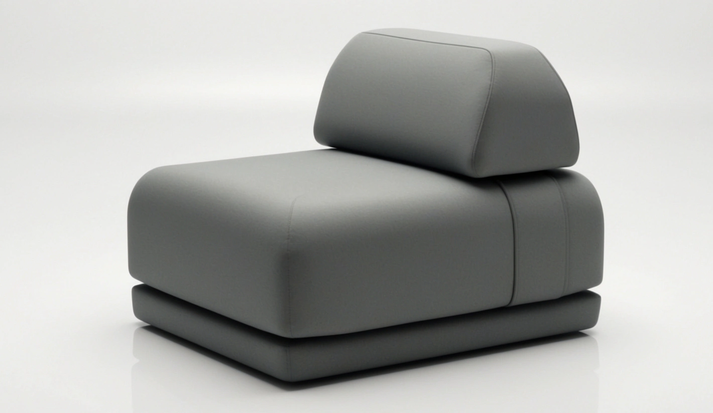 Cuando se presenta sin respaldo, el módulo ofrece una superficie limpia, uniforme y de líneas depuradas, que puede utilizarse también como reposapiés o como apoyo auxiliar dentro del conjunto.