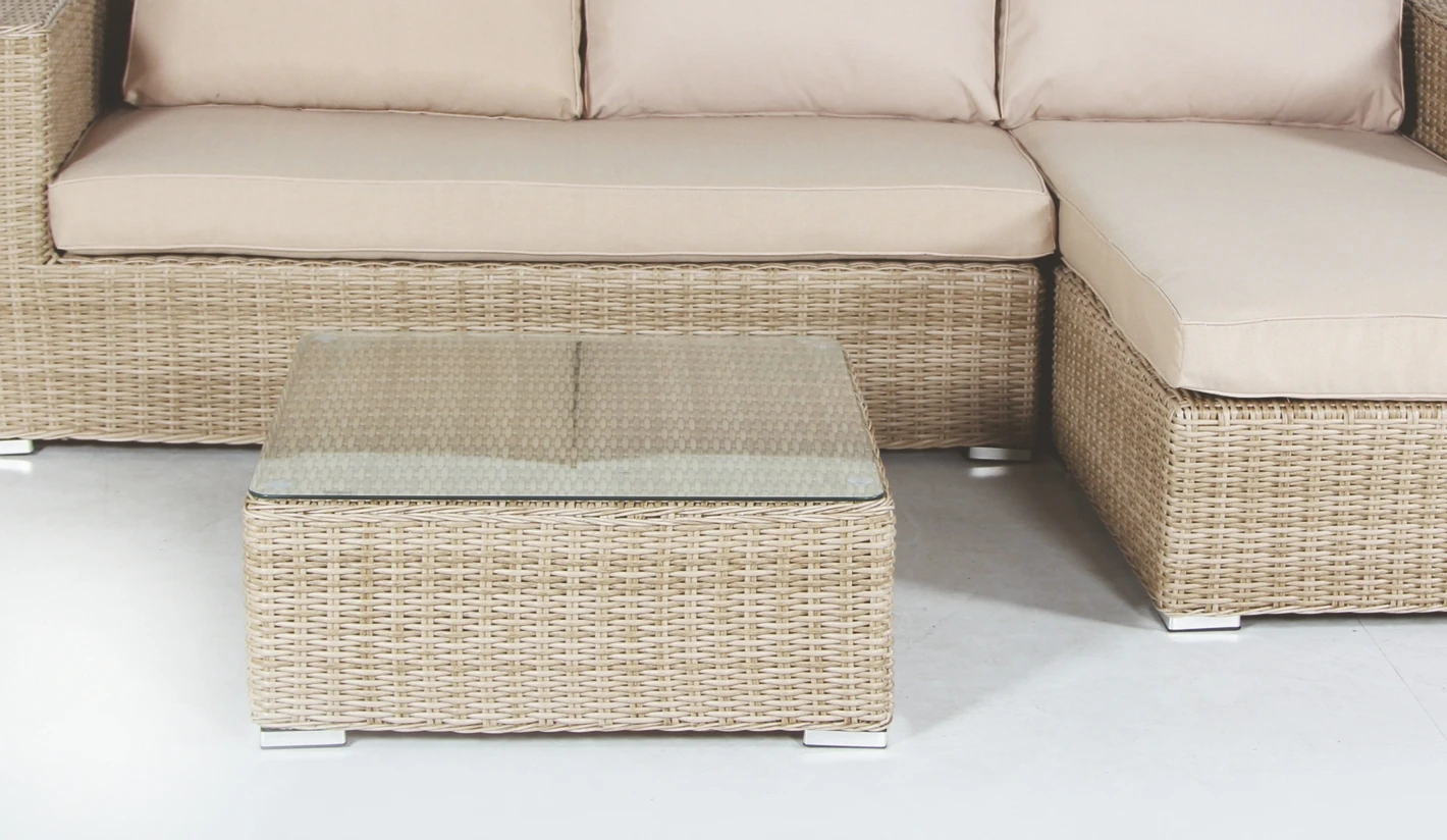 Dimensiones: sofá 2 plazas: 160 ancho x 85 profundo x 65 altura + Chaise Longue: 160 profundo x 85 ancho x 65 altura + mesa: 75 x 75 x 32cm