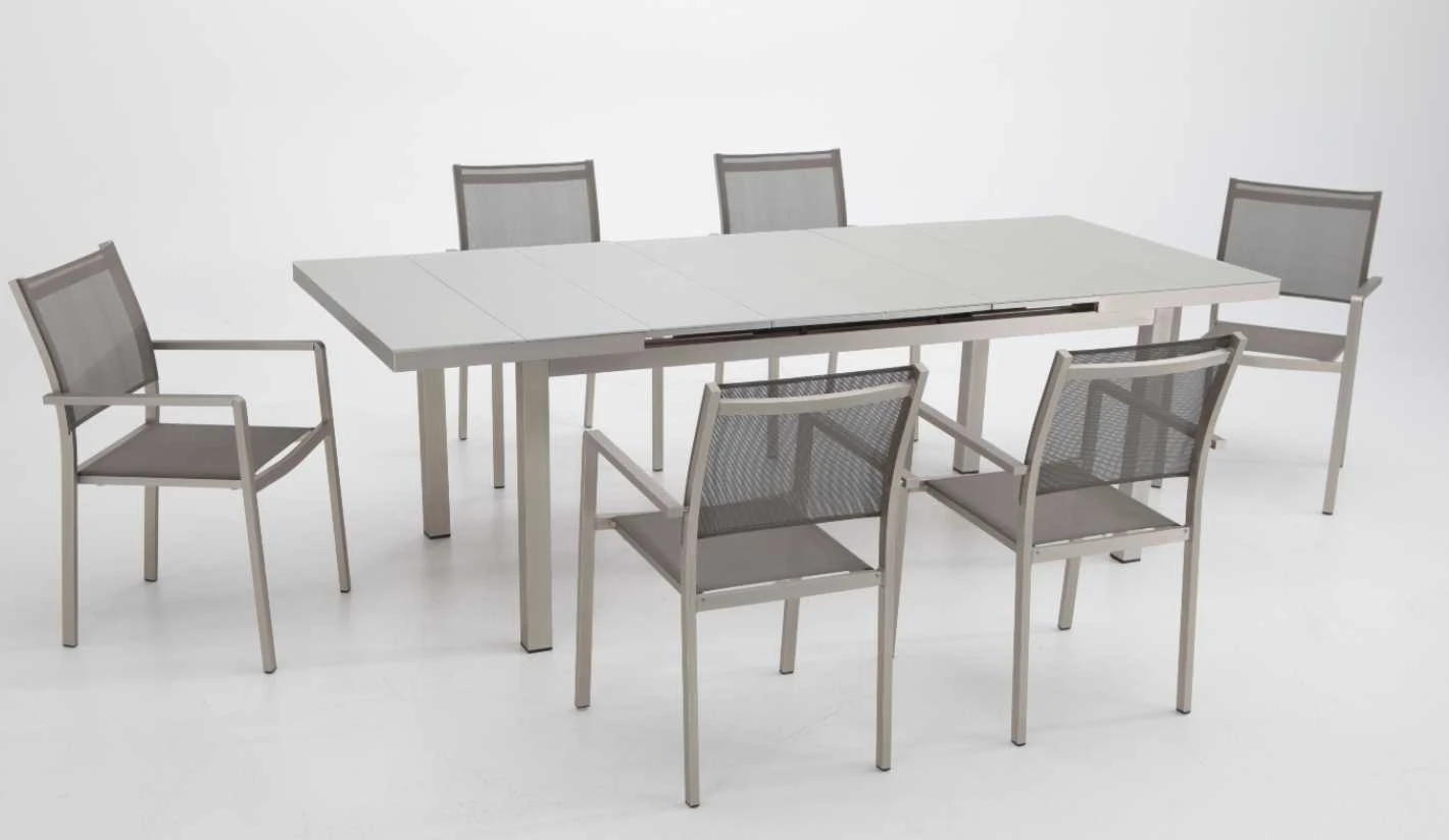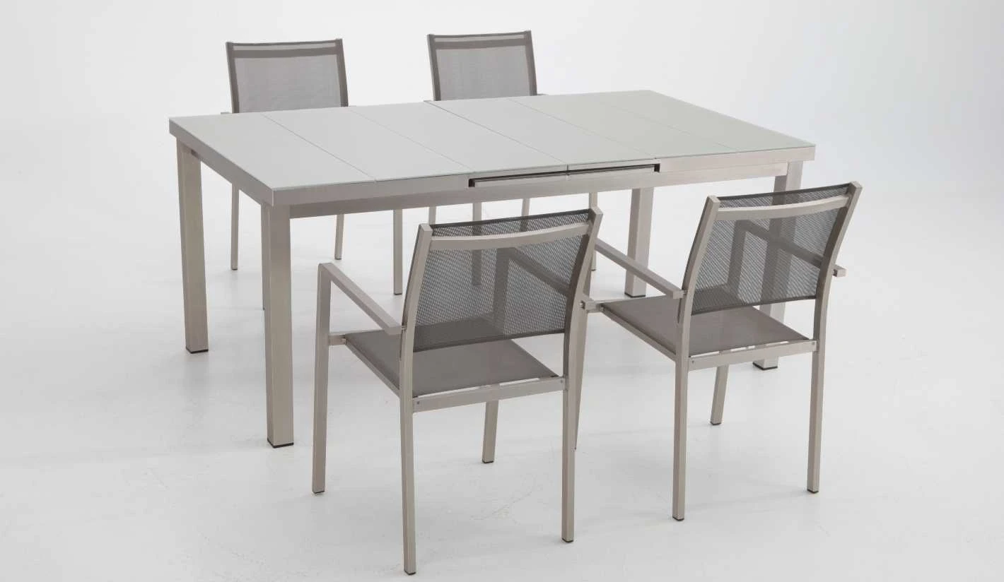 Ver descripción de la colecciónEste conjunto de sillas y mesa tiene la estructura de aluminio con acabado brushed (cepillado) que da un efecto de gran calidad.