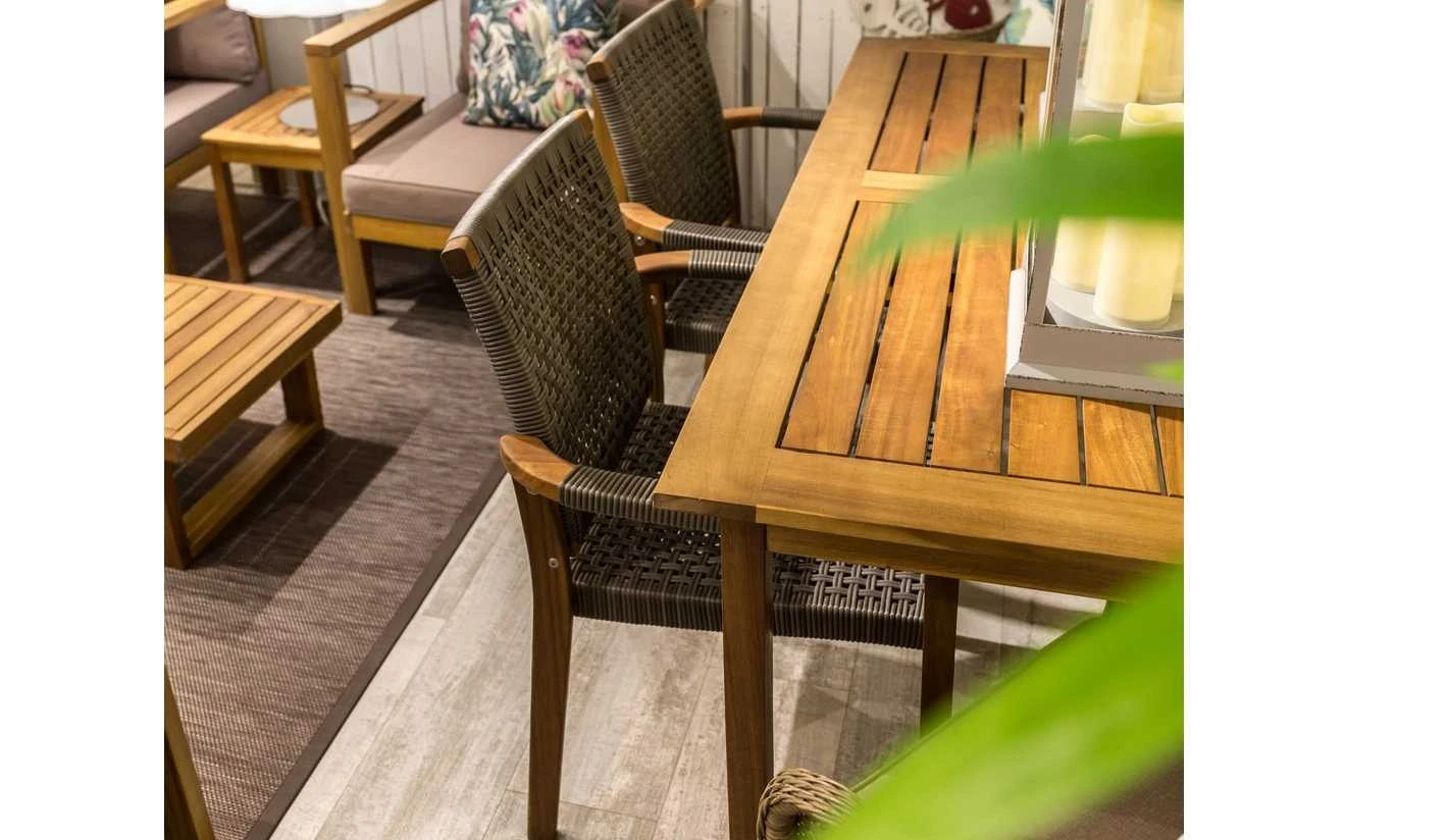 La madera de acacia maciza es conocida por su resistencia y durabilidad, lo que la hace ideal para muebles de exterior. Además, esta madera es resistente a la intemperie y puede soportar cambios de temperatura extremos, lo que significa que tus muebles se verán increíblemente bien durante años.