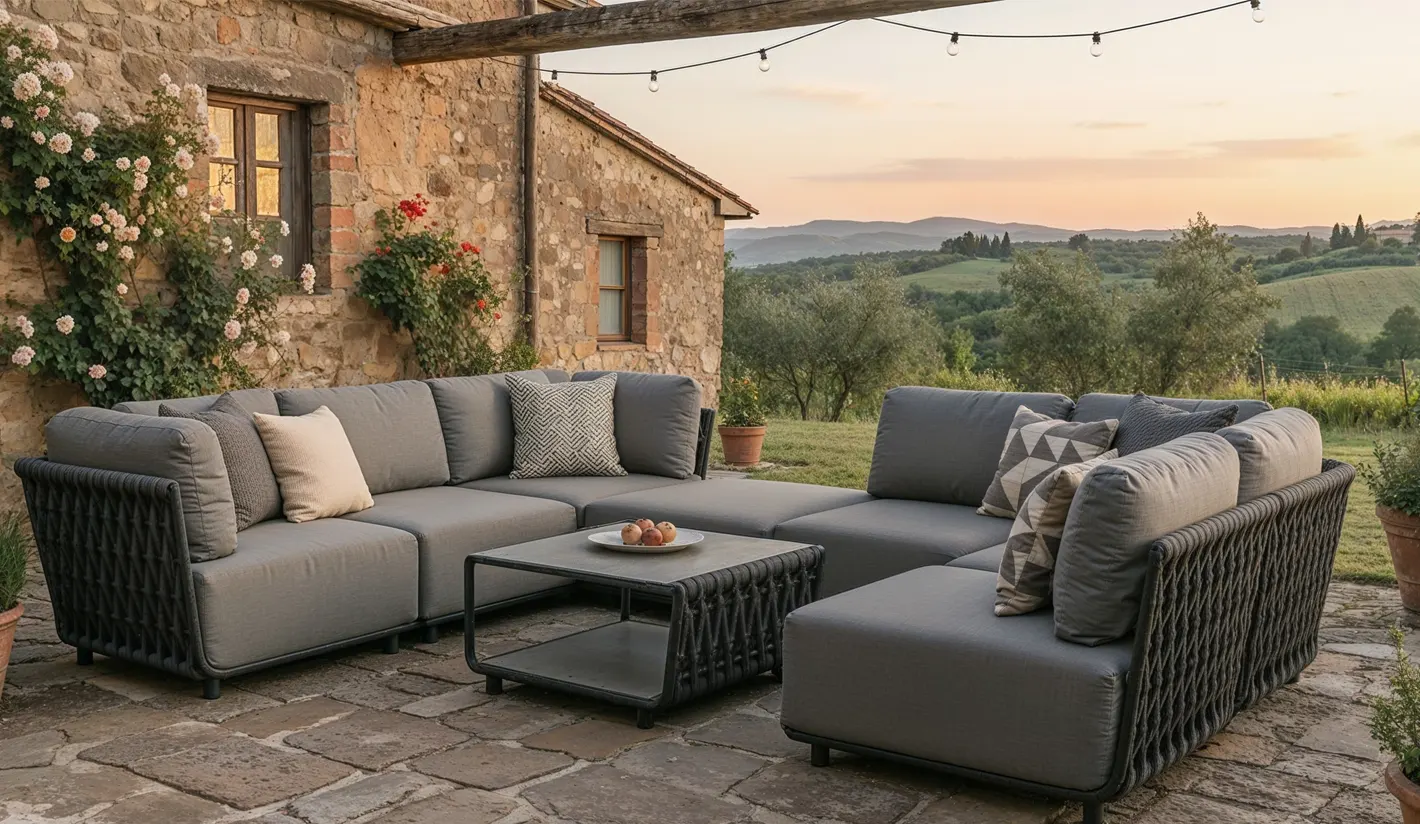 Cojinería 100% waterproof de 30 cm de grosor: máxima comodidad y alta resistencia a la humedad, ideal para uso intensivo en exterior.