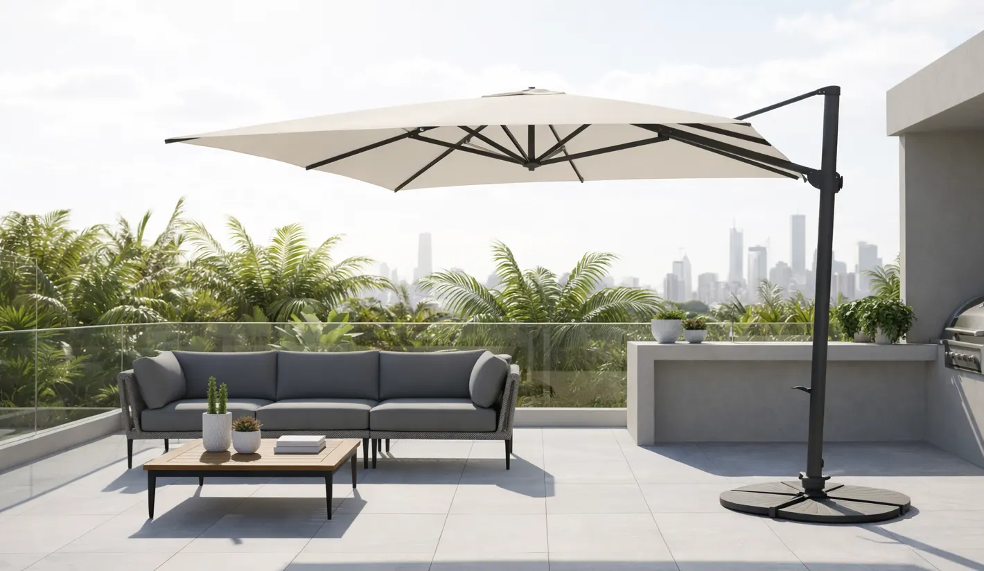 Parasol excéntrico de aluminio en dos colores