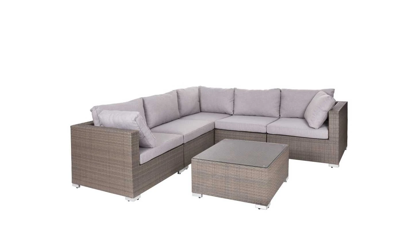 Ver descripción de la colecciónEsta colección de rattan sintético jaspeado (varios colores entre tonos marrones).