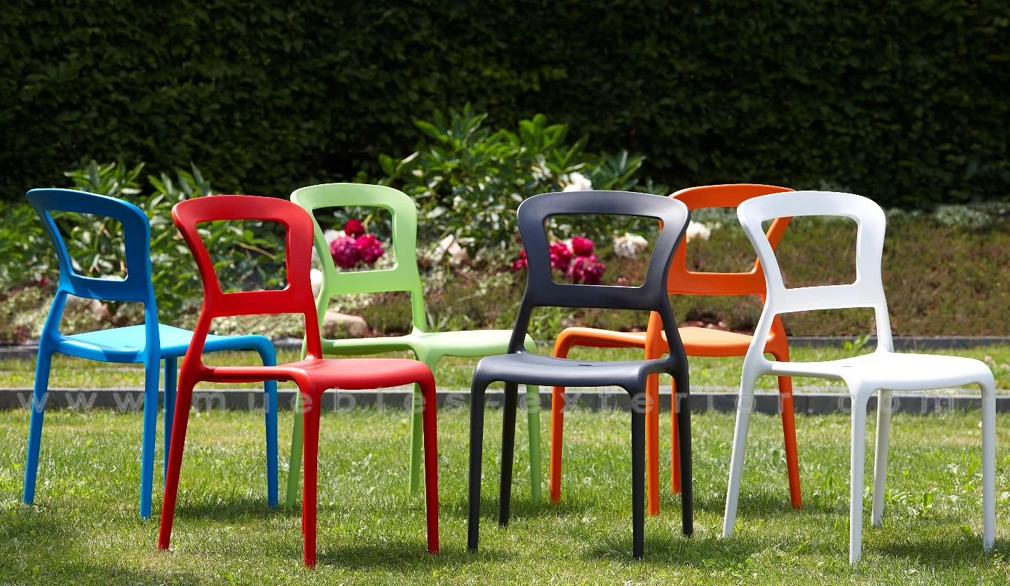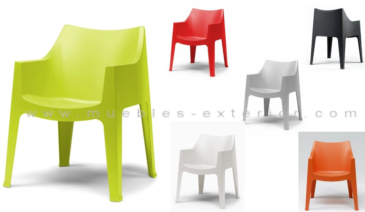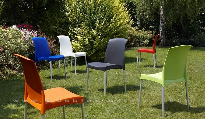 Silla exterior de polipropileno apilable con diferente color de asiento