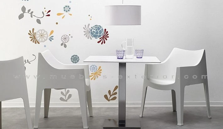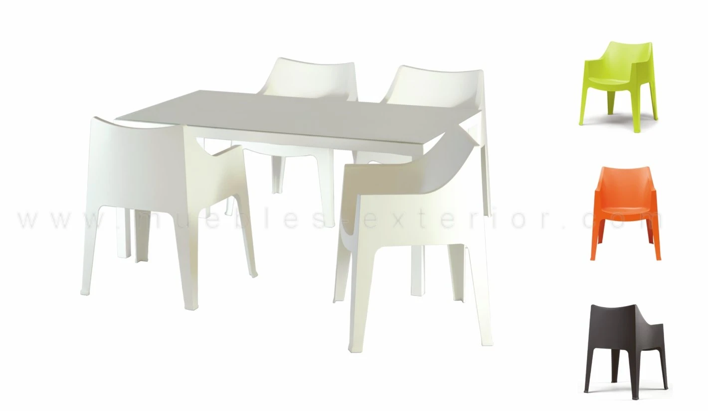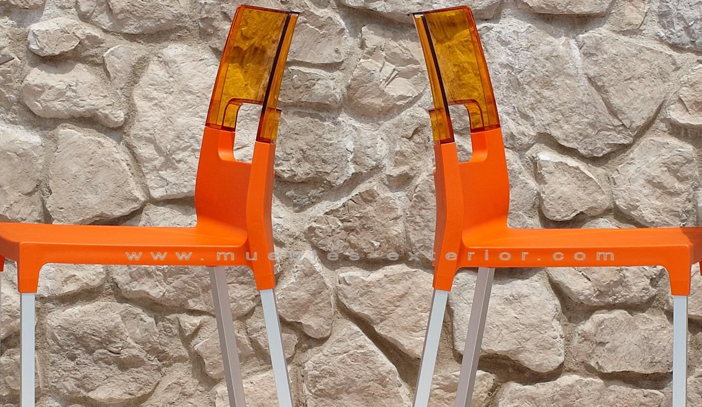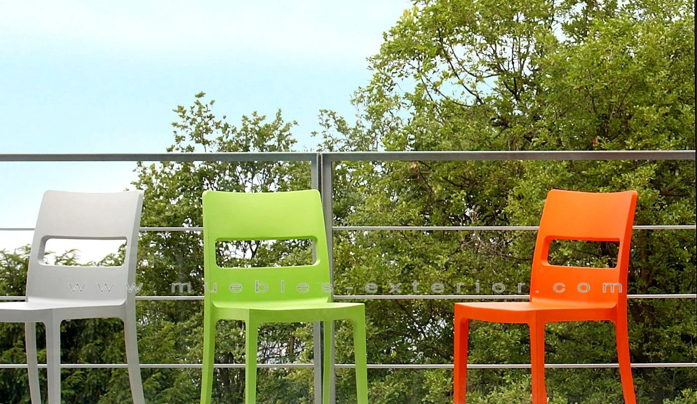 Esta colección de sillas de exterior es una buena opción para la decoración de jardines y terrazas en las que se quiere poner una nota de color a precios baratos. Colección de sillas ideal para combinar con cualquier tipo de mesas de comedor o como sillas para la hostelería.