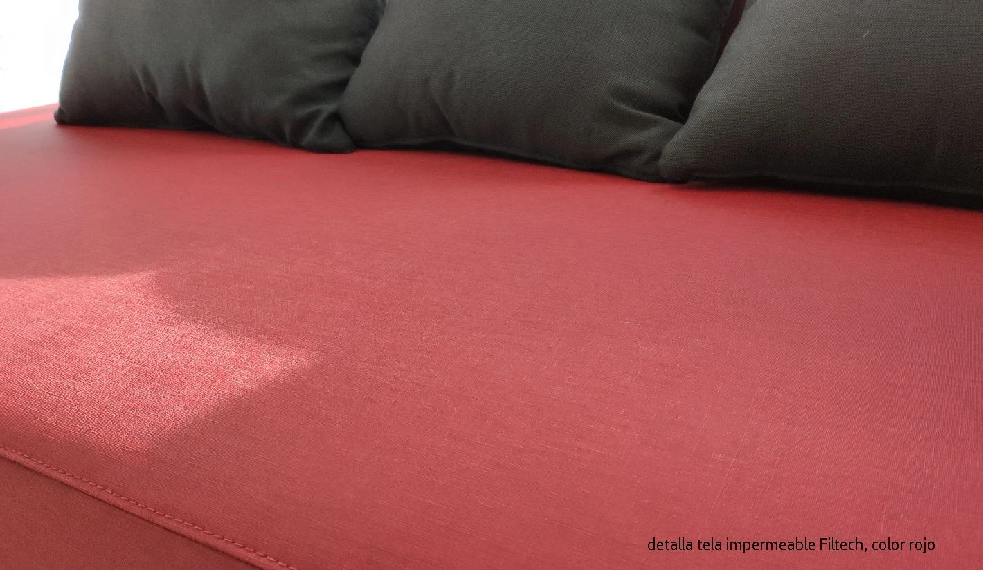 - Telas impermeables de última generación, de limpieza ultra fácil con un paño o agua a chorro, para la mayoría de las manchas orgánicas recientes, (incluido polvo, barro, comida, salsas, vino tinto...) debido a su tratamiento.
