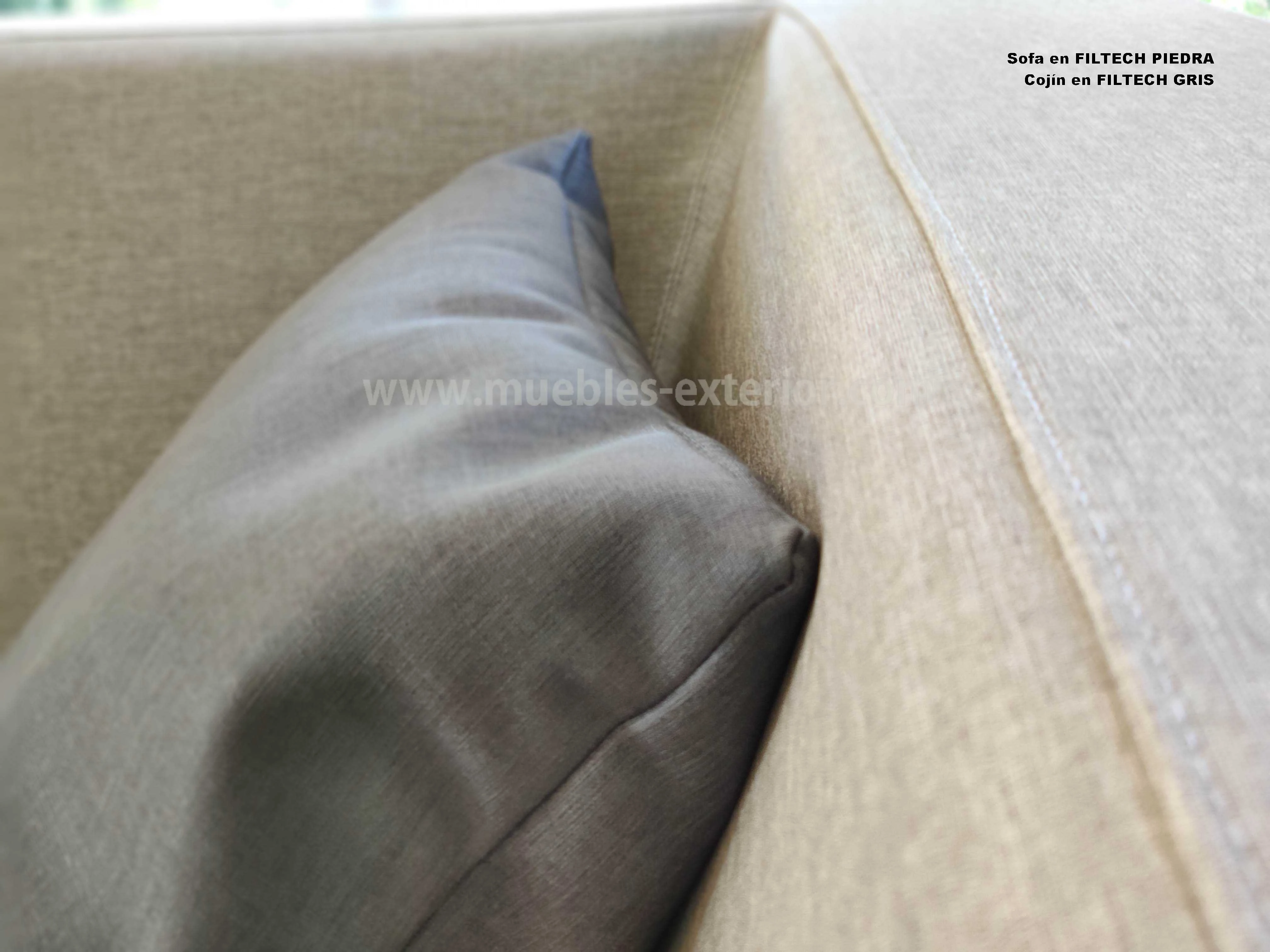 Colección Tela gama "FILtECH": Fabricada en vinilo con protección UV, alta resistencia al roce y total al sol y exterior. Totalmente impermeable y de facilidad de limpieza. Efecto jaspeado que la hace muy natural y elegante. Acabado tacto agradable.
