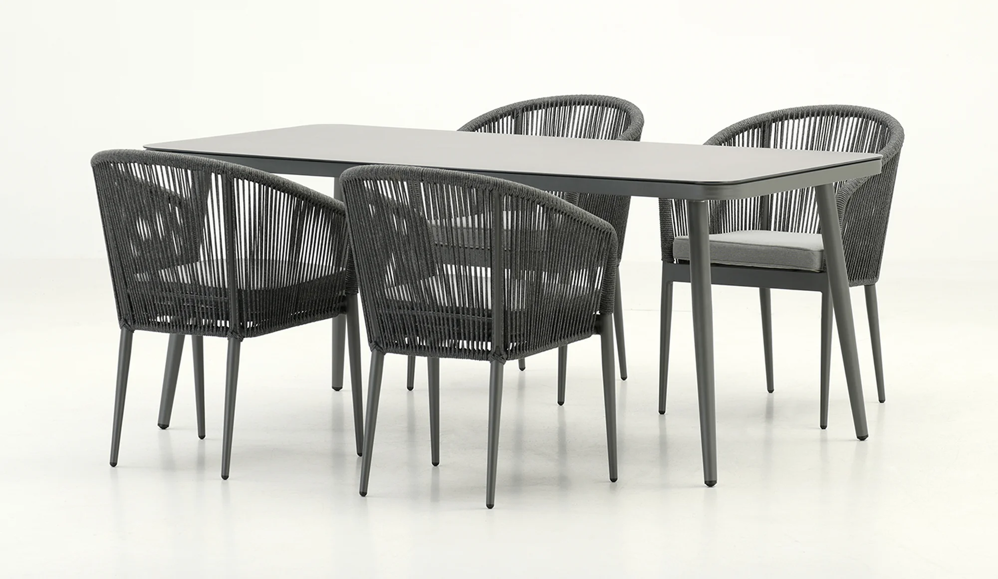 Su diseño limpio y líneas rectas se adaptan fácilmente a cualquier entorno exterior. Ofrece el espacio perfecto para compartir comidas, reuniones o momentos de relax, aportando una estética moderna con materiales que garantizan larga vida útil