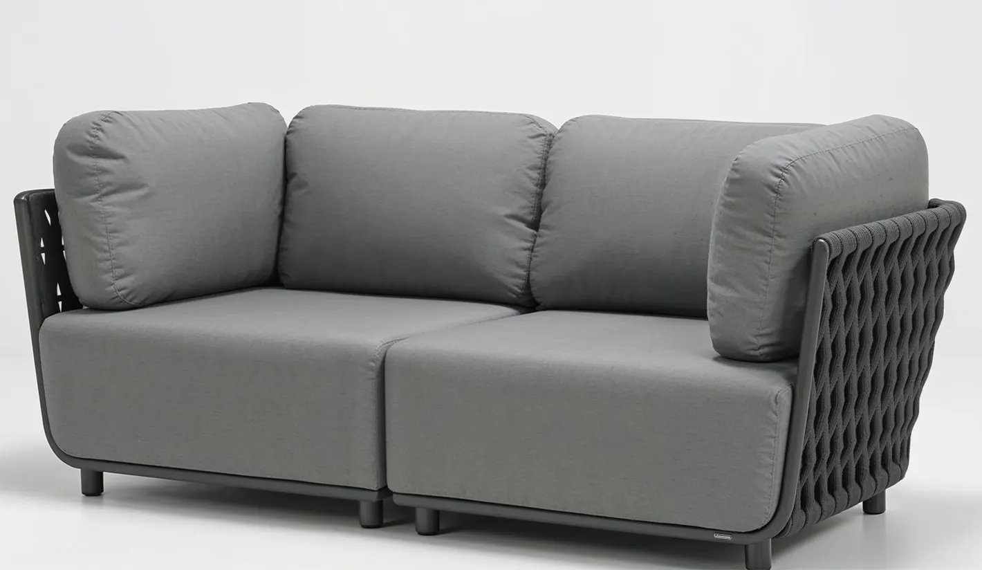 El sofá de jardín modular de 2 plazas, compuesto por 2 rinconeras, ofrece el equilibrio perfecto entre diseño y funcionalidad. Su formato compacto lo hace ideal para terrazas medianas o para complementar composiciones modulares más grandes.