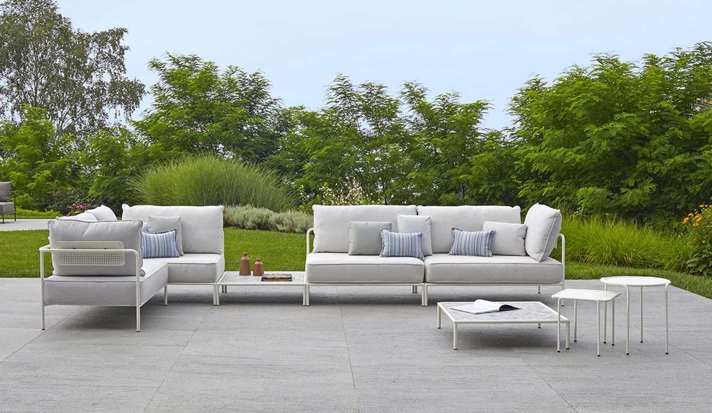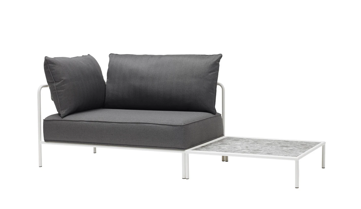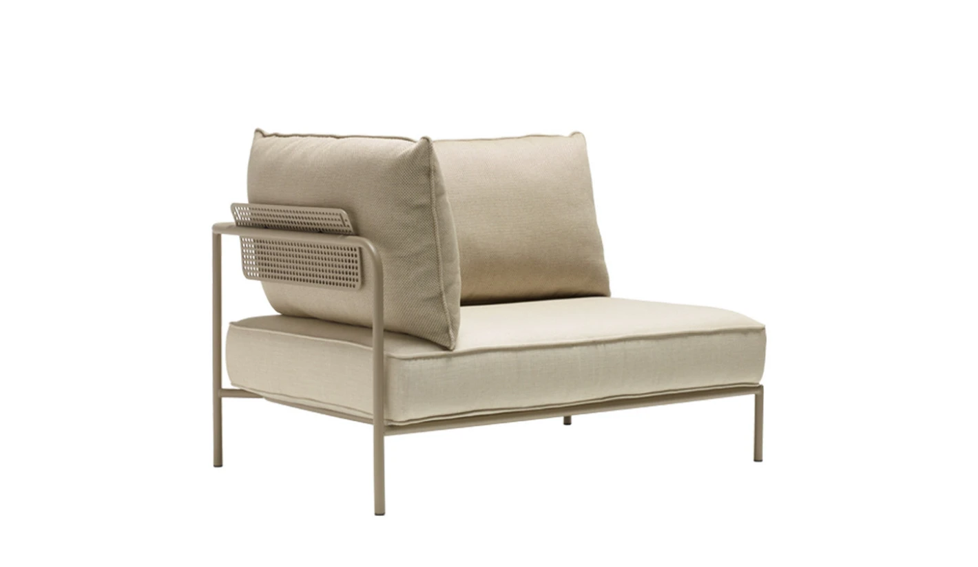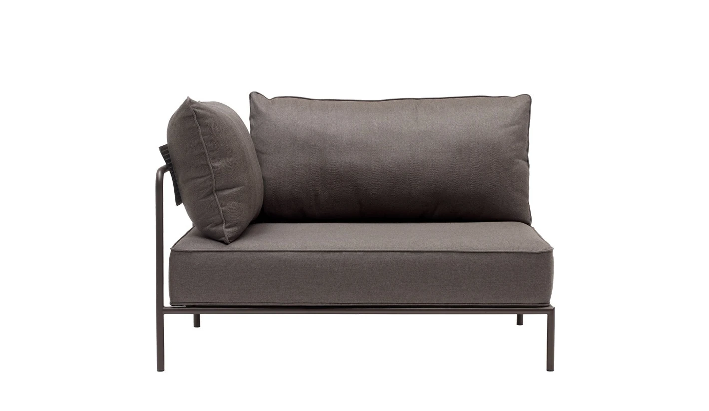 Módulo central con brazo derecho con cojines desenfundables, repelentes al agua 100% en tejido Sunbrella o Ágora.