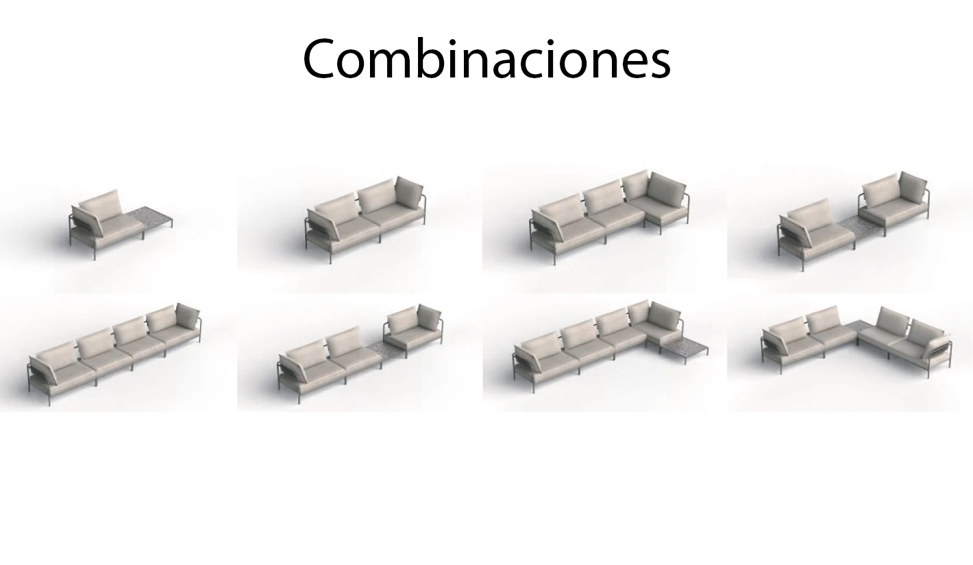 Cojineria acrílica con densidad de 25kg con tejido Agora o Sunbrella 100% repelente al agua