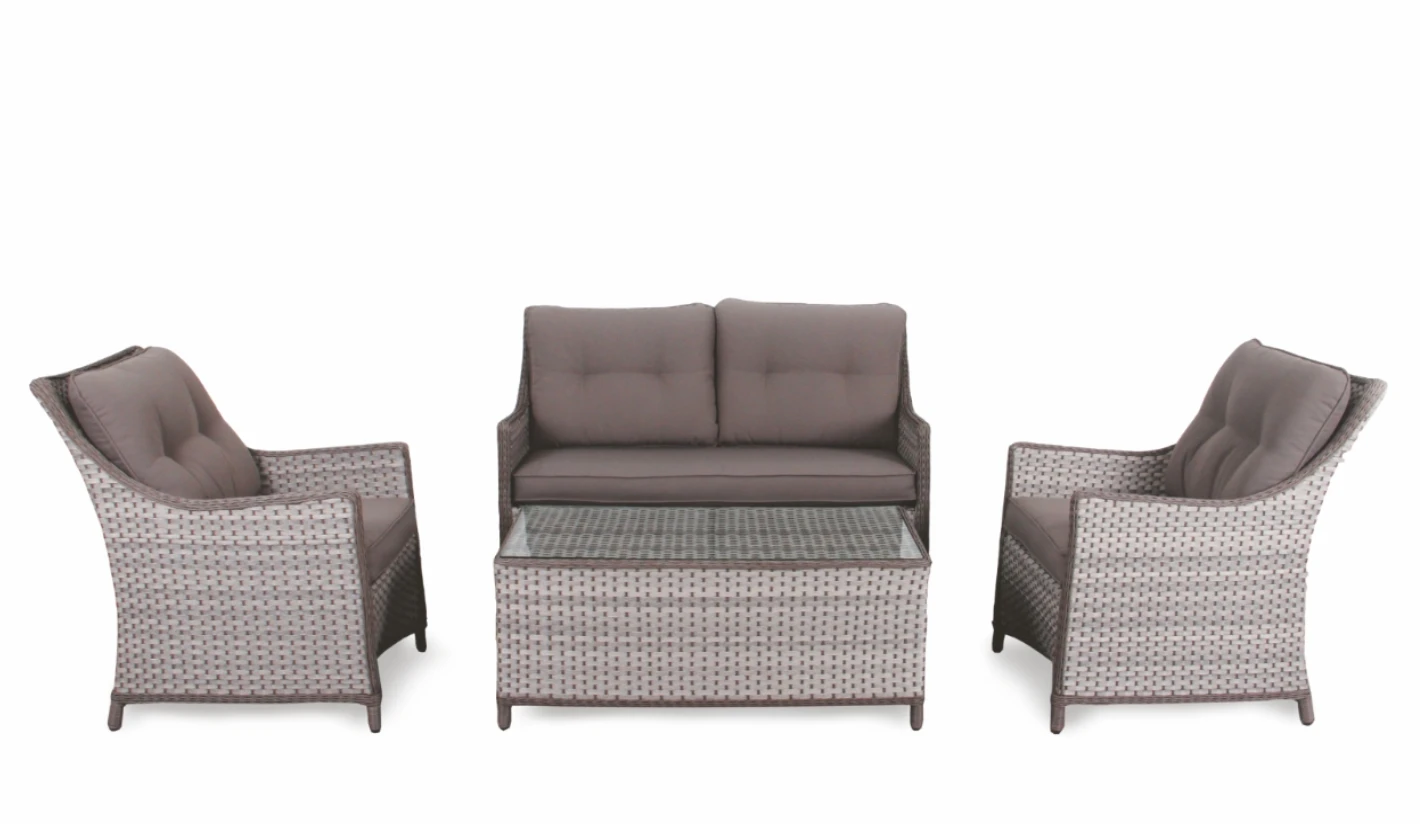 Es un set pensado para disfrutarlo en compañia, ya que viene don dos sofás de jardín individuales, uno de dos plazas y una mesa.