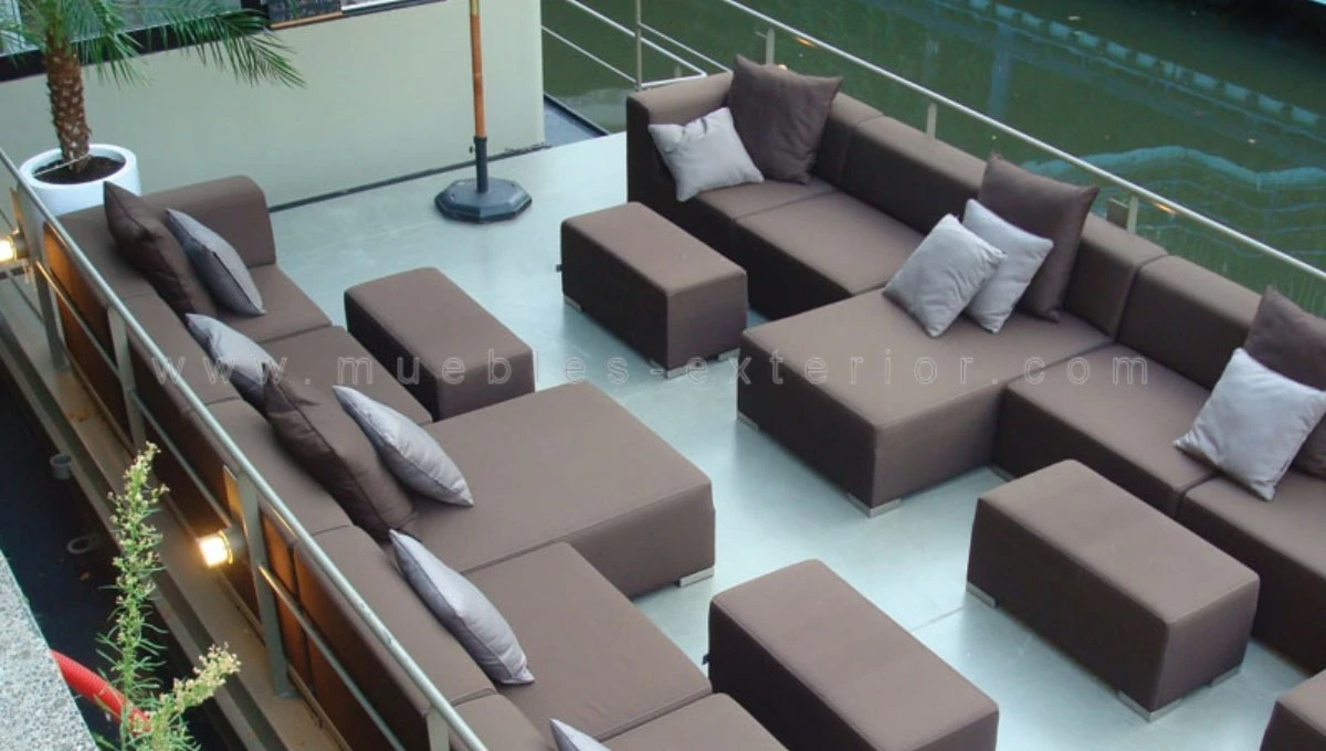 Está fabricado con tela impermeable y se puede elegir en cualquier color de todos los disponibles en esta colección de muebles de exterior.