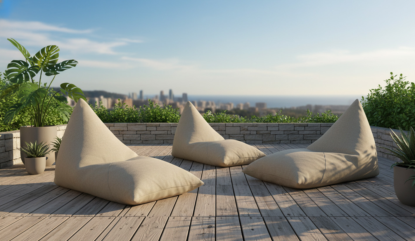 Este Puff se puede fabricar en telas náuticas impermeables: