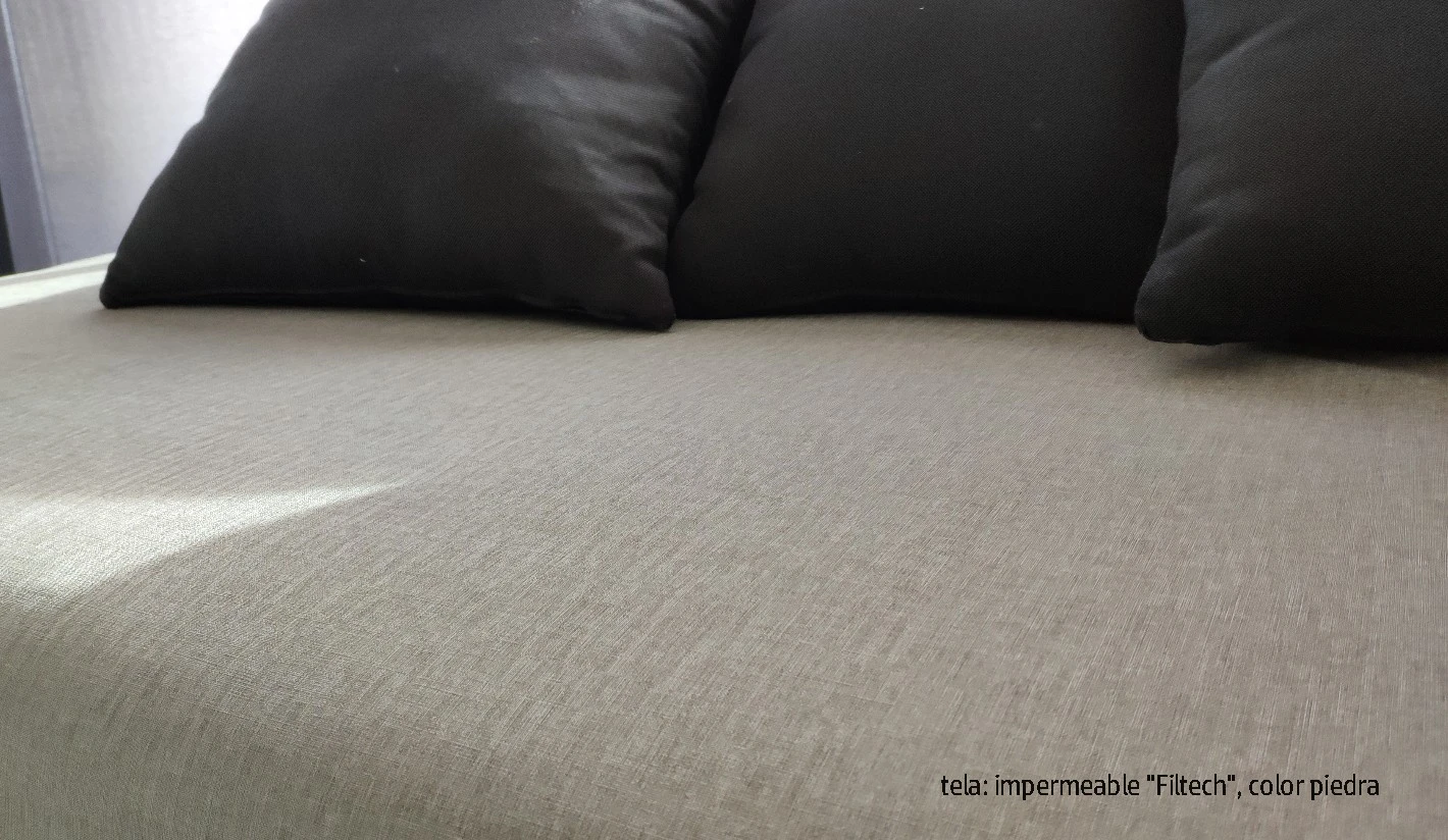 Está fabricado en telas náuticas, con protección UV, impermeables, tratamiento anti manchas y anti hongos.