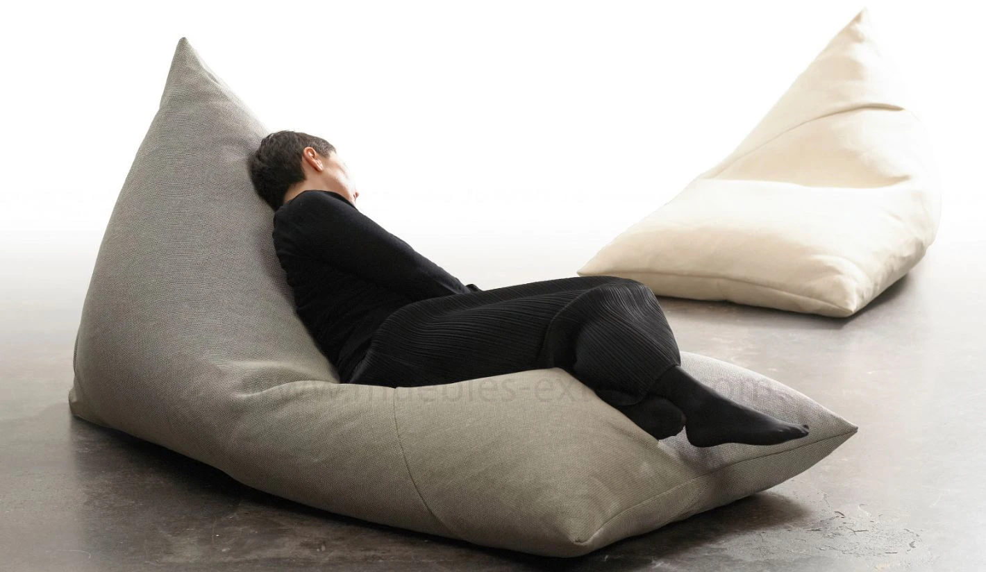 Puf muy cómodo que se adapta a la forma del cuerpo, totalmente ergonómico, debido a su interior formado por bolitas de piliestireno.