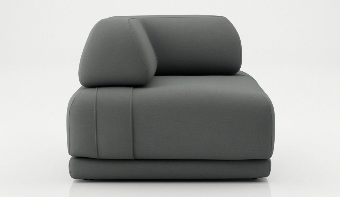 Este módulo ha sido concebido para funcionar como pieza de unión en composiciones en esquina, permitiendo ampliar el sofá en distintas direcciones y aprovechar mejor el espacio disponible. Su formato facilita la creación de zonas de descanso más envolventes, acogedoras y funcionales.
