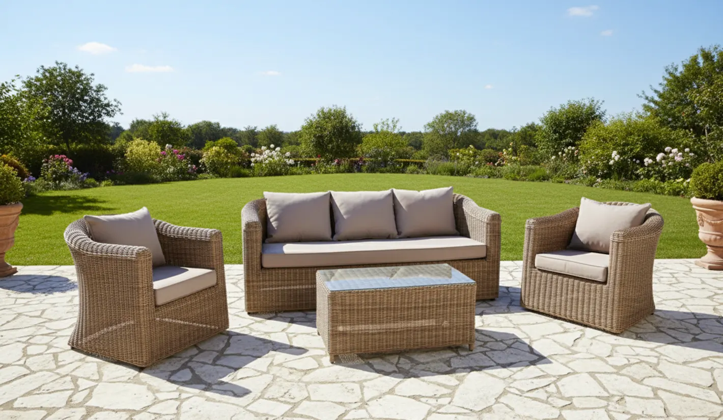 Este conjunto de jardín es ideal para crear una zona chill out, un salón exterior o un espacio de reunión acogedor. Su combinación de rattan sintético, aluminio y cojines de exterior lo convierte en una opción práctica, elegante y de bajo mantenimiento, perfecta para disfrutar del aire libre con el máximo confort y estilo