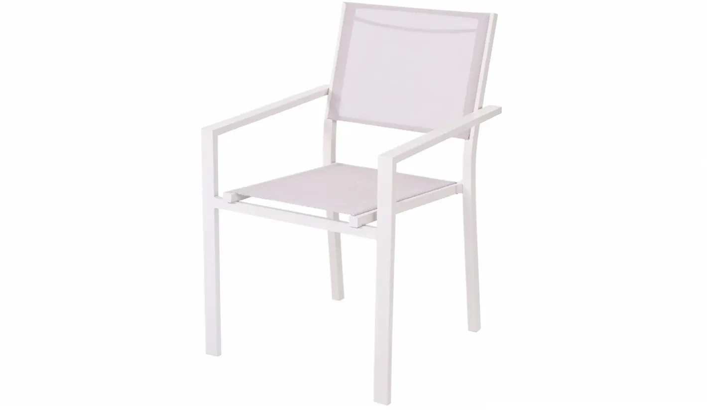 Silla de exterior de aluminio lacado en blanco con textilene 2x1 en color PERLA