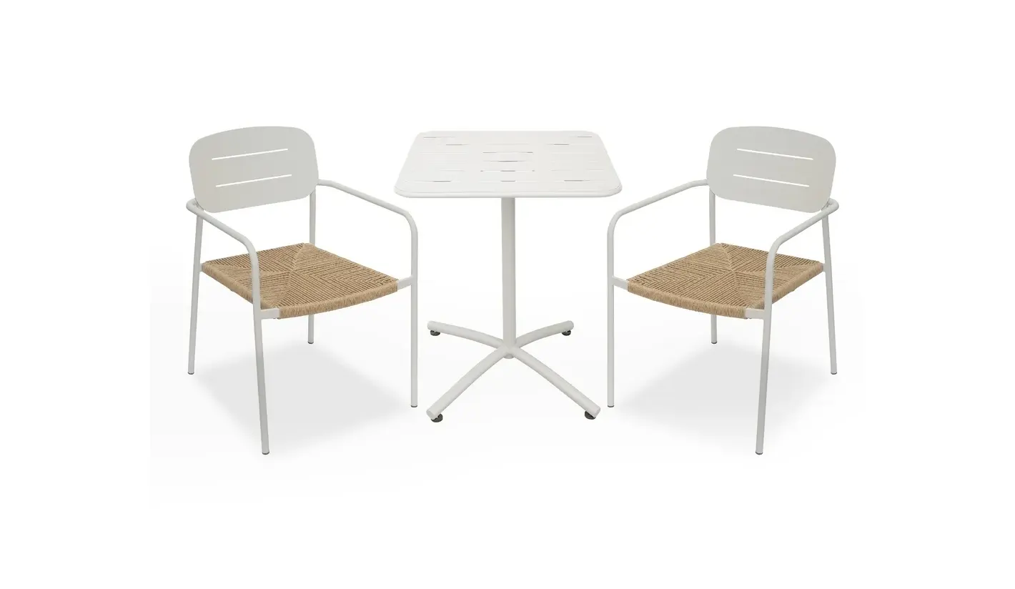 Perfecta para terrazas, jardines, cafeterías y restaurantes que buscan muebles duraderos y con estilo. Fácil mantenimiento: basta con un paño húmedo y jabón suave para mantenerla impecable.