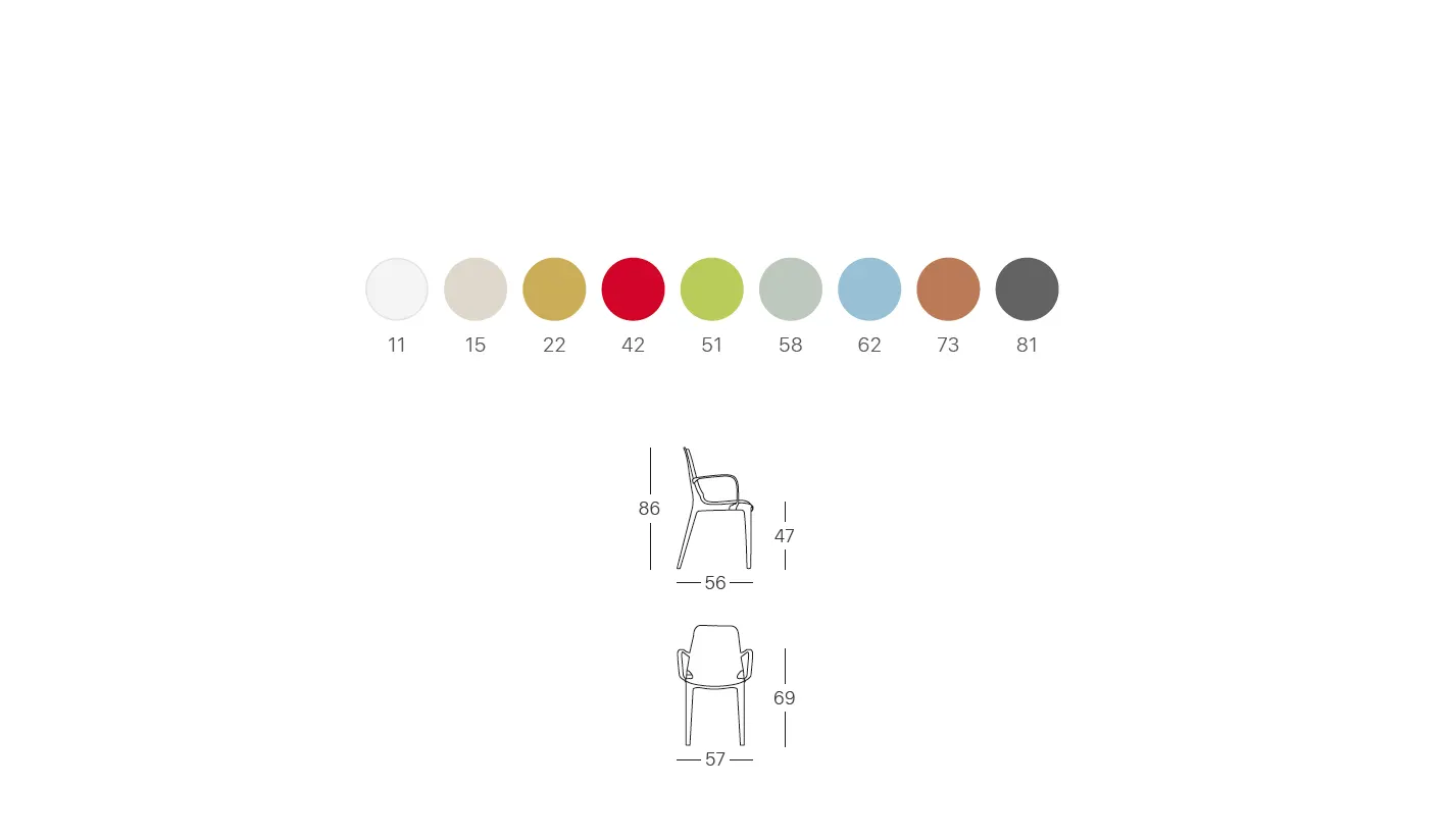 Silla en resina tecnopolímero con brazos para exterior e interior.