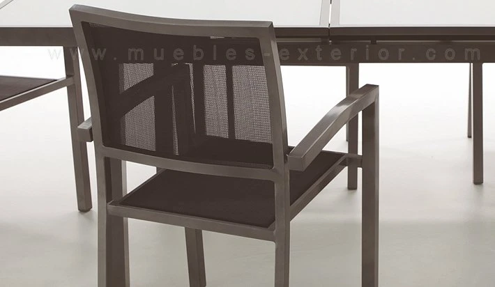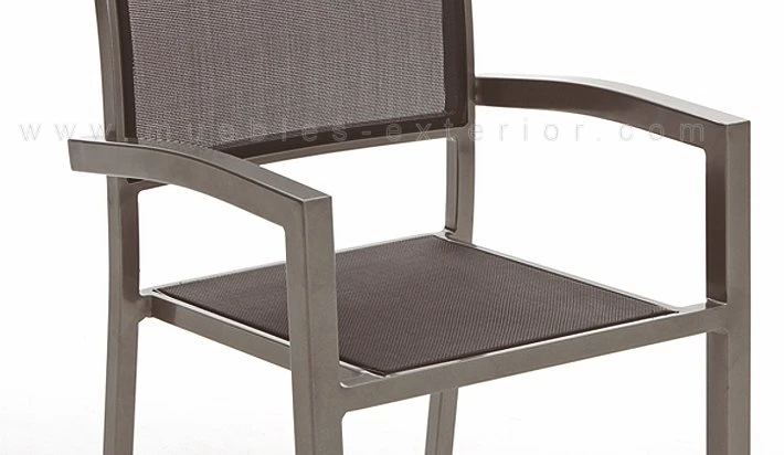 Silla de exterior de aluminio, material muy ligero que le da a la silla la ligereza y diseño ideal para la decoración de su jardín.
