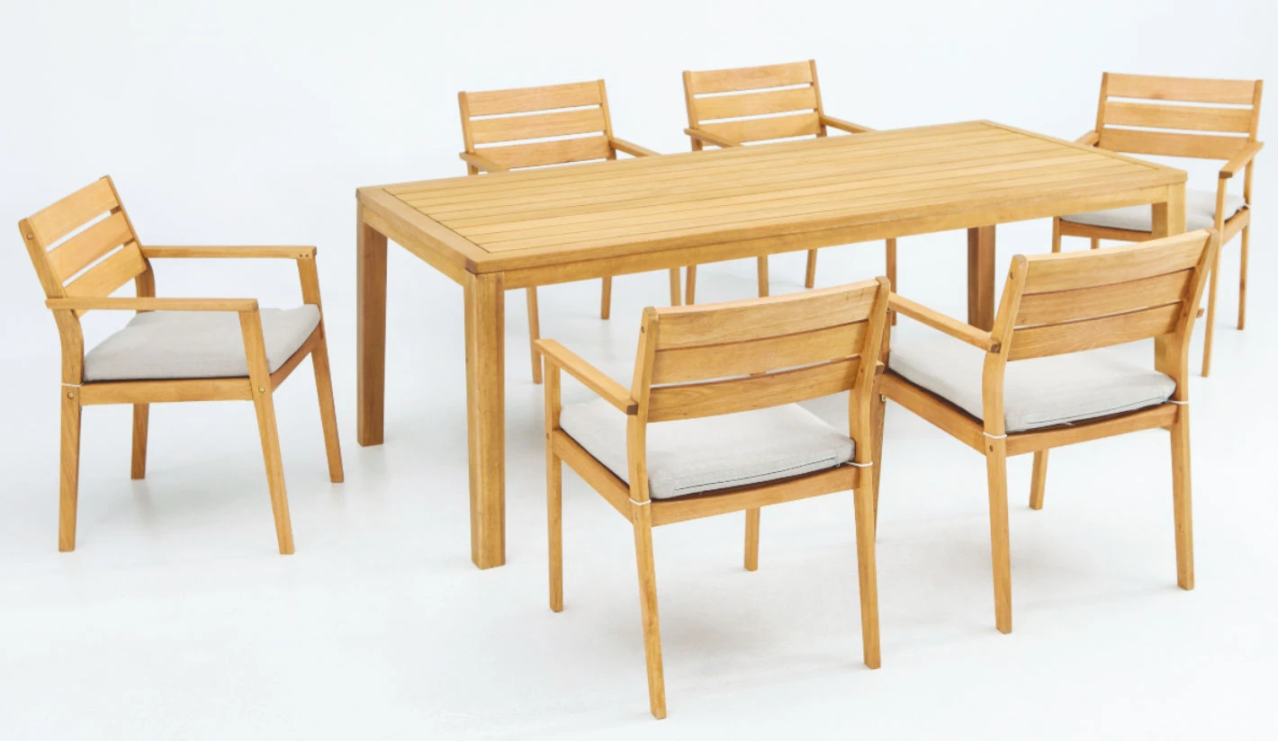 Silla muy funcional fabricada en madera de exterior. Diseño innovador y moderno, pero manteniendo toda la calidez que aporta este tipo de madera de exterior de excelente relación calidad-precio.
