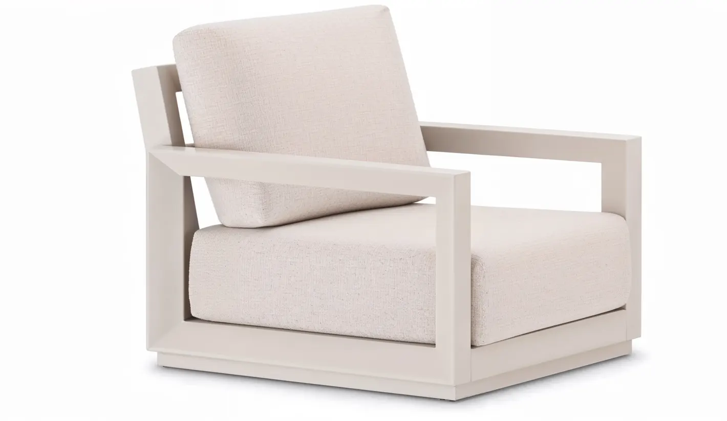 Sillón de exterior diseñado para ofrecer comodidad, resistencia y una estética sofisticada en jardines, terrazas y patios. Su estructura de aluminio en color moka aporta un tono cálido y natural, combinando a la perfección con entornos exteriores modernos o mediterráneos. El aluminio es un material ligero, robusto y resistente a la corrosión, preparado para soportar el uso en exterior sin oxidarse ni deteriorarse.