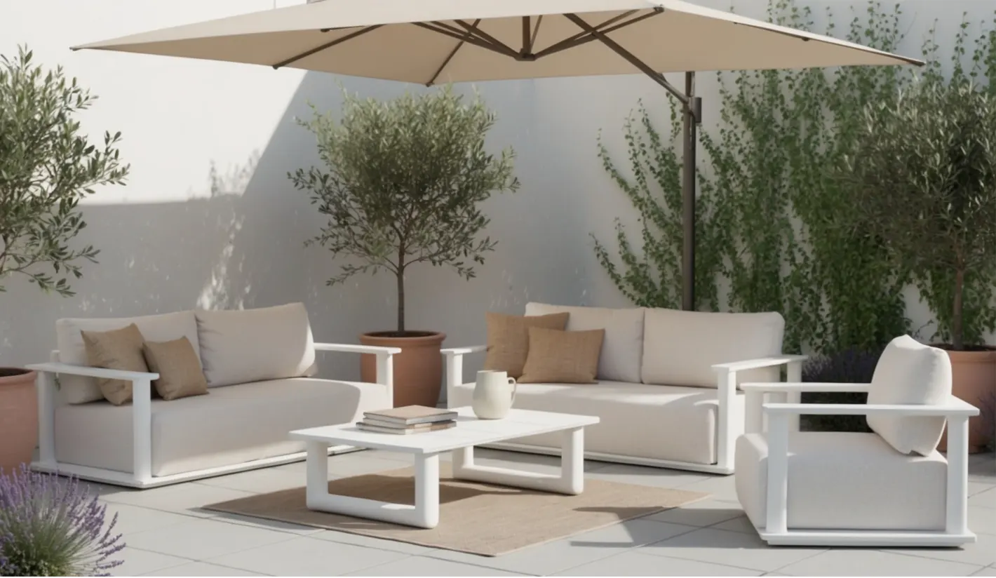 Este sofá de 2 plazas de aluminio con cojines waterproof es una solución perfecta para crear un espacio exterior acogedor, moderno y funcional, combinando diseño, comodidad y materiales pensados específicamente para el uso en exteriores