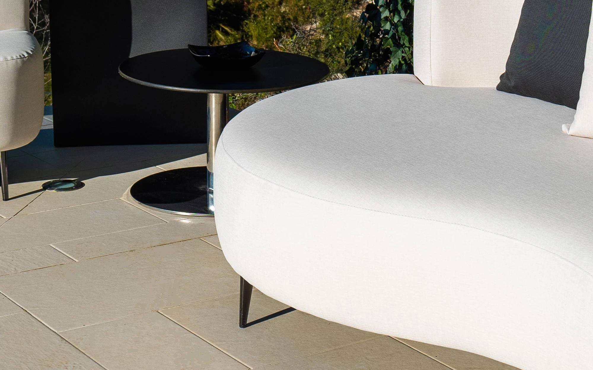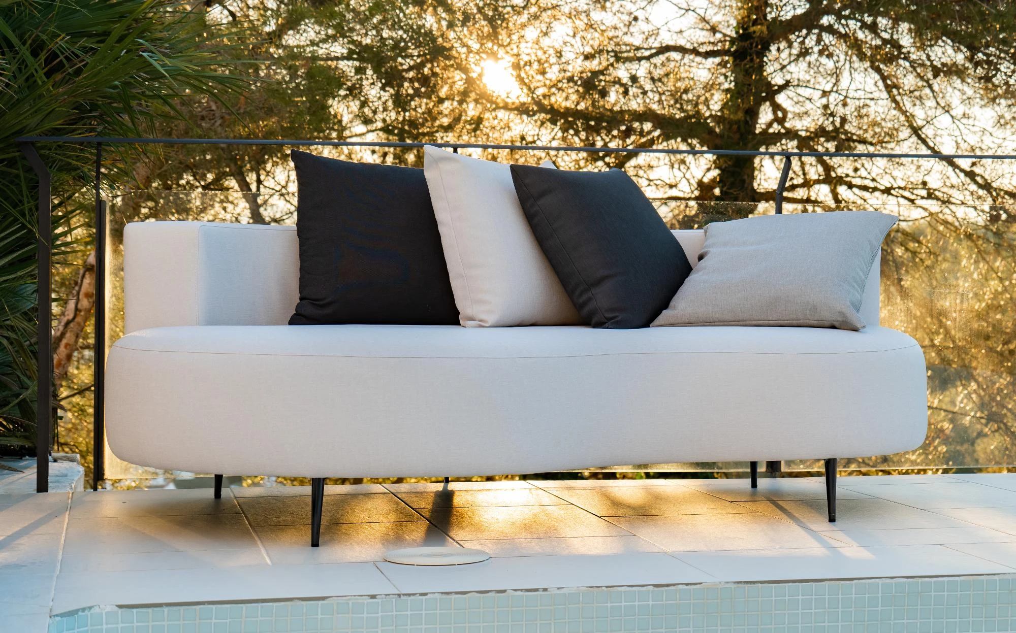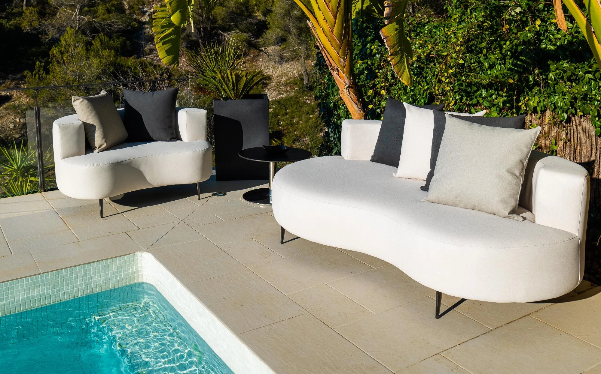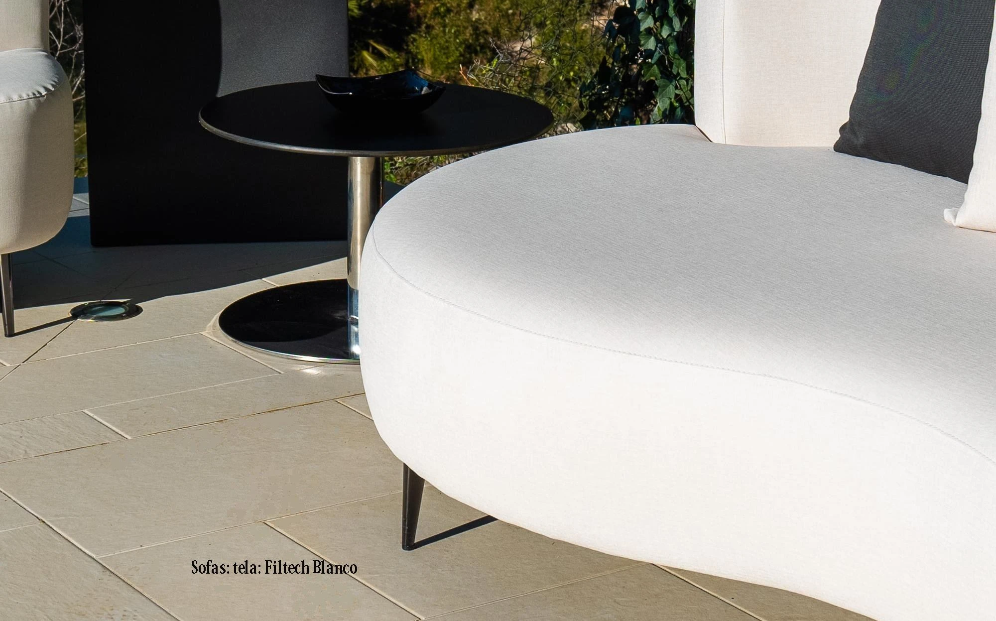 « Sofás exterior líneas redondeadas telas impermeables. Diseño y máximo confort para el jardín