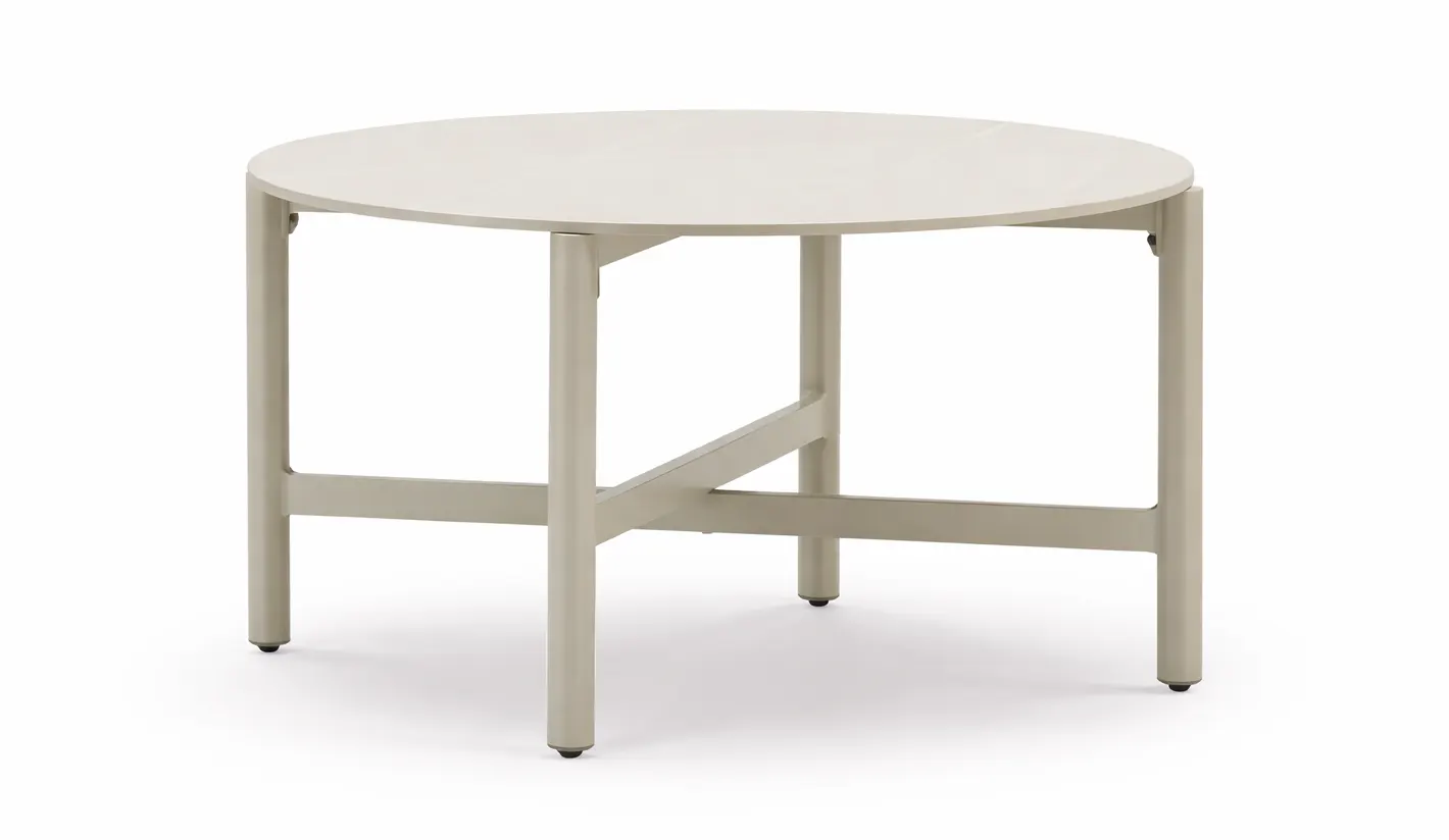 Mesa de aluminio en color gris con tablero de piedra sinterizada de 12mm de grosor