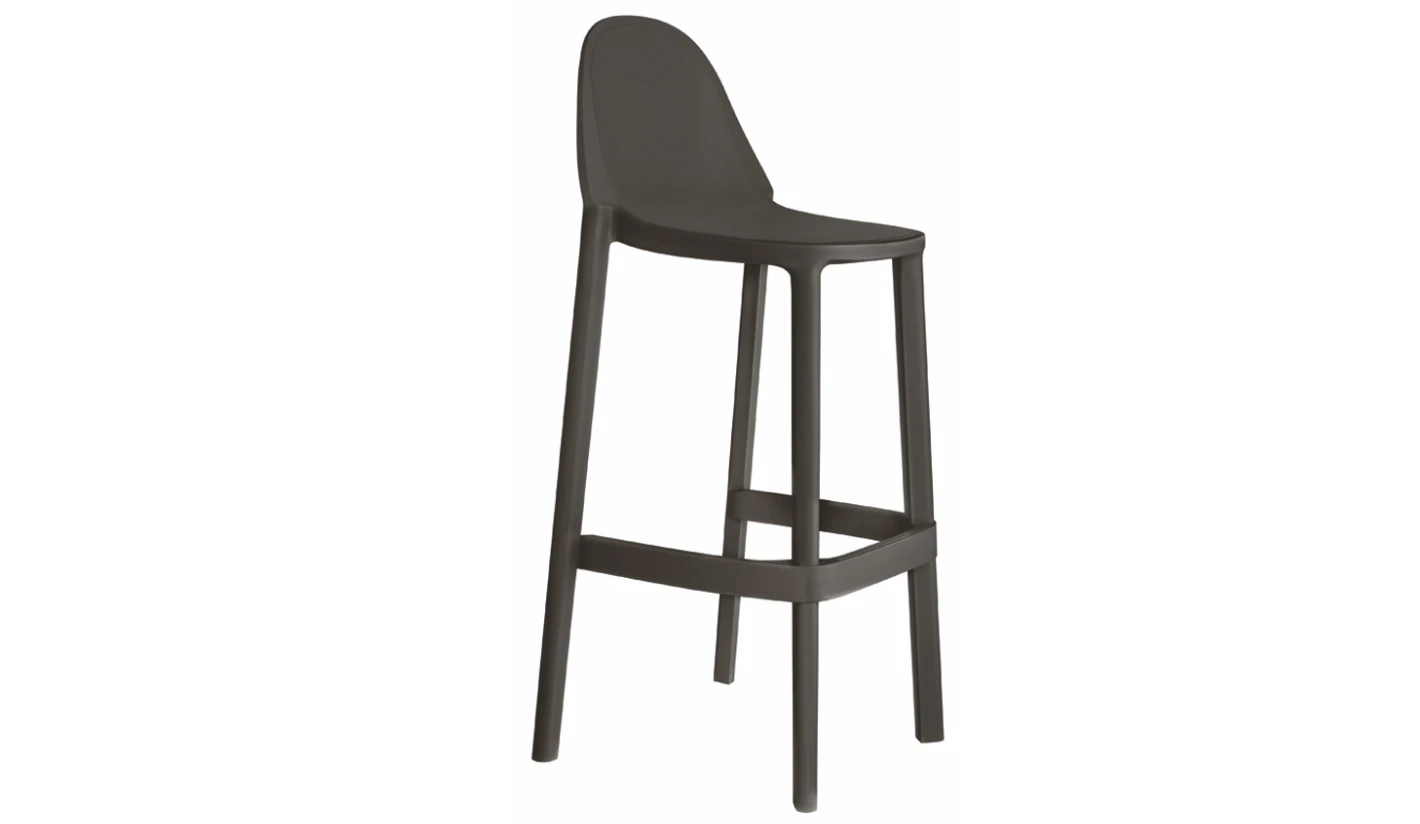 Estilizado taburete para bares o restaurantes, con una estructura de tecnopolímero inyectada con aire y fibra de vidrio que lo hace muy resistente y ligera a la vez.