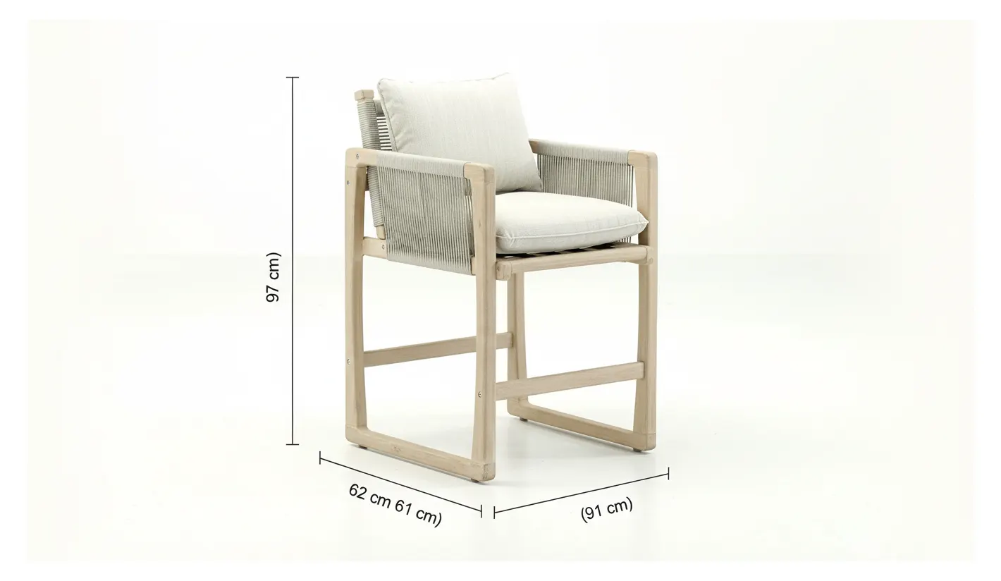 Gracias a su diseño versátil y equilibrado, estos taburetes se integran perfectamente en comedores, terrazas, barras de cocina o porches cubiertos, aportando elegancia natural y funcionalidad en cualquier ambiente.